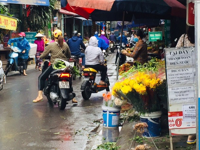 Ghi nhận tại chợ Trại Găng, thuộc hai phường Thanh Nhàn và Cầu Dền (quận Hai Bà Trưng), tình trạng tụ tập, đứng xúm vào nhau vẫn diễn ra. Cả người mua và người bán rất chủ quan trong việc bảo đảm khoảng cách tối thiểu 2m. Thậm chí, vẫn có người dân không tuân thủ đeo khẩu trang. Các hàng bán thịt, cá, rau, củ, quả họp tràn lan dưới lòng đường. Tại phố Bạch Mai, phường Bạch Mai, nhiều người còn tụ tập ngồi uống nước chè, không đeo khẩu trang và không bảo đảm an toàn khoảng cách.