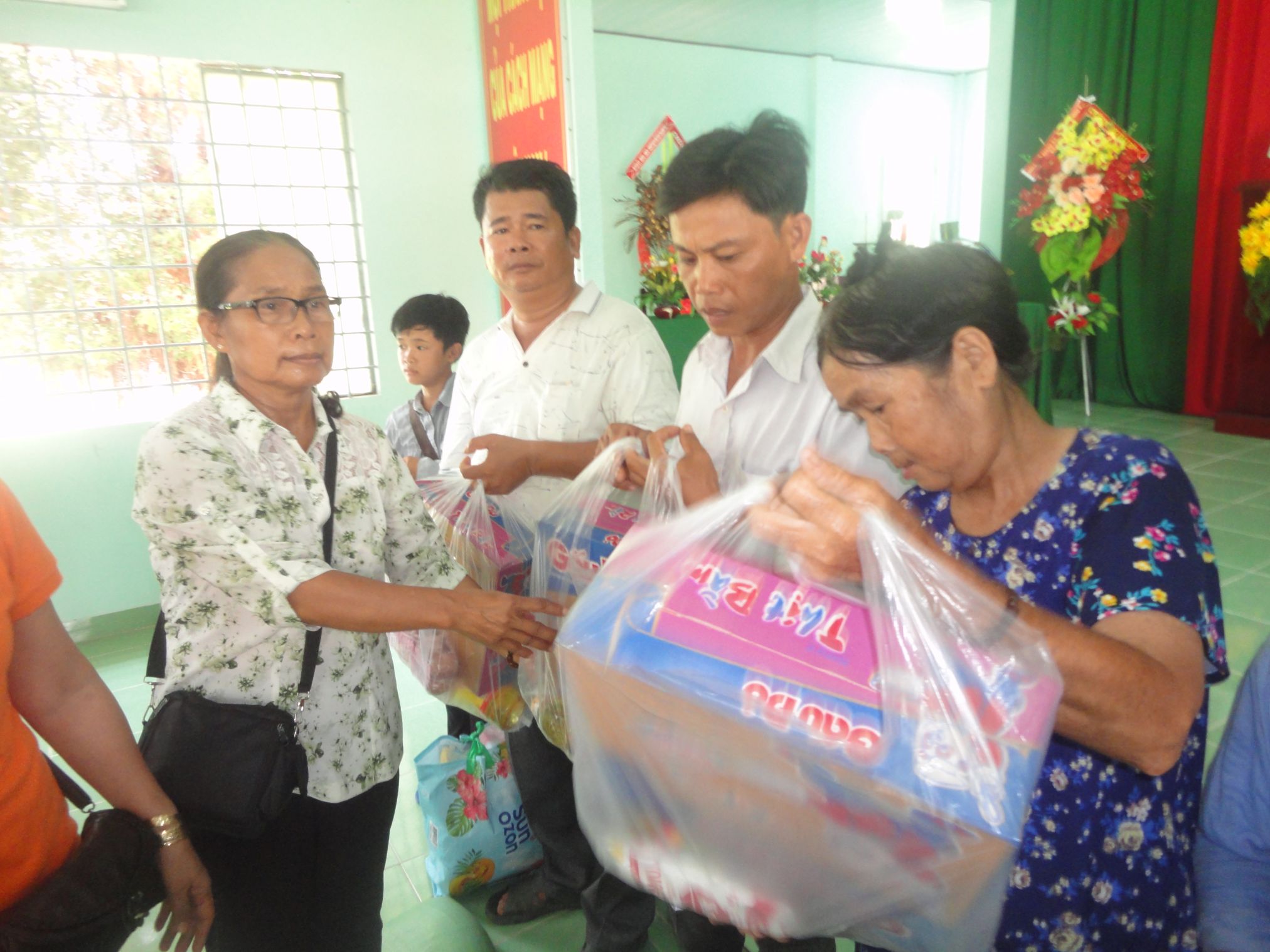 NNCĐDC và người nghèo tại xã An Điền, huyện Thạc Phú, tỉnh Bến Tre nhận quà.