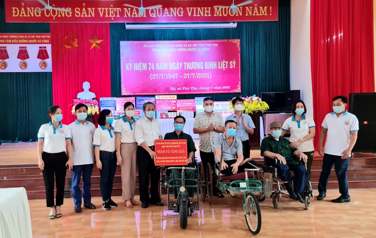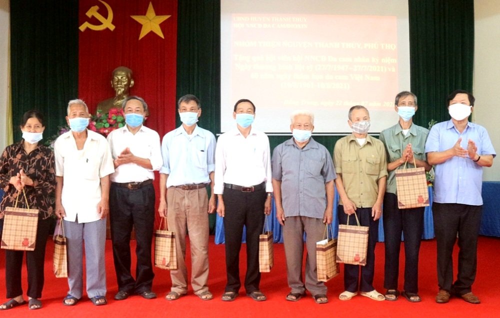 Tại Trung tâm điều dưỡng người có công tỉnh Phú Thọ, ngoài 5 triệu đồng Nhóm Thiện nguyện tặng thương bệnh binh, Tỉnh hội Phú Thọ còn tặng quà cho 9 thương, bệnh binh là NNCĐDC.