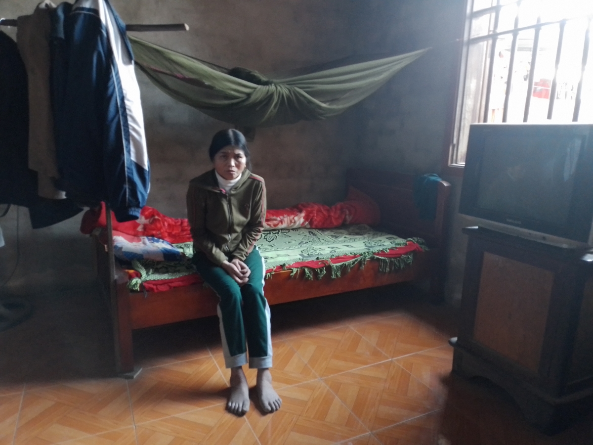 Hiện, cô con gái đầu, sinh năm 1979, nhiễm di chứng chất độc da cam, thiểu năng trí tuệ, đang được bàn tay ông chăm sóc nuôi dưỡng.