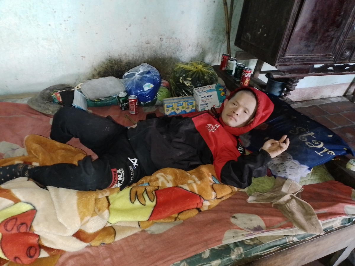 Tôi còn gặp một gia đình NNCĐDC ở xóm 2, xã Hưng Mỹ, có 4 người con và 2 cháu nhưng các cháu đã mất vì di chứng chất độc da cam. Người con đầu sinh năm 1987 đã mất, cô con gái thứ 2 đỡ hơn, người con thứ 3 nặng hơn, bao năm nằm một chỗ, rồi cũng đã qua đời, còn một người con thứ 4 sinh năm 1990, cũng chỉ ngồi một chỗ hoặc vận động bằng xe lăn, không nói được. Mọi sự chăm sóc đều dựa vào người mẹ ốm yếu, mắt kém, sức cùng lực kiệt; người bố chán nản bỏ bê, lang thang hết chỗ này chỗ khác. Bà Hồ Thị Trâm, mẹ của nạn nhân rưng rưng kể.