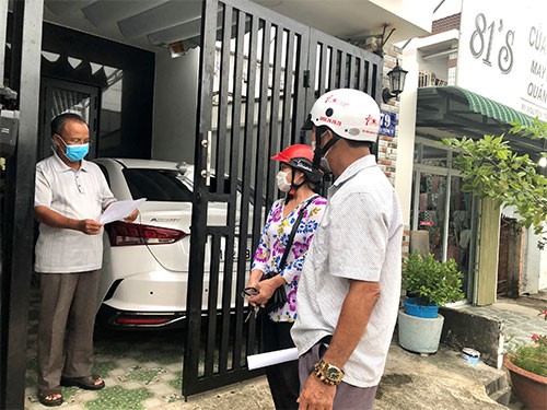 Những thành viên Tổ Covid-19 cộng đồng phường Tân Thiện lặng lẽ đến từng nhà tuyên truyền phòng chống bệnh Covid -19.