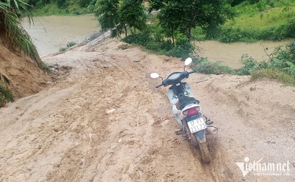 | Đường vào điểm trường Huồi Mới sạt lở nghiêm trọng trong những ngày qua |
