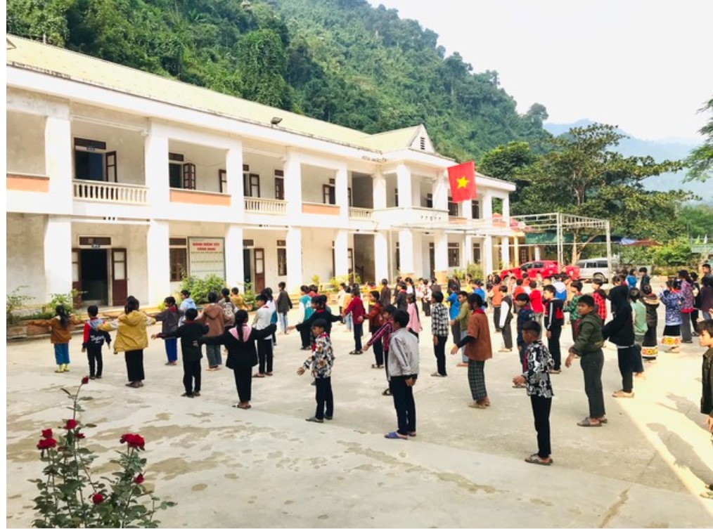 | Giờ thể dục giữa giờ của học sinh Trường Phổ thông Dân tộc bán trú Trung học cơ sở Tam Hợp, Tương Dương (Nghệ An). |