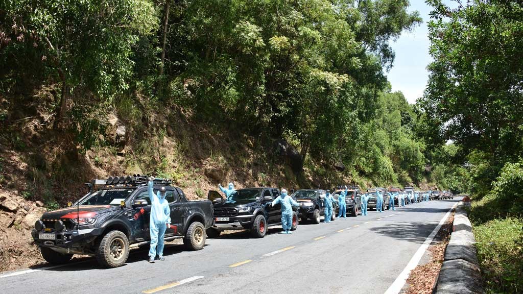 Đoàn xe bán tải trong một hành trình đi trao nhu yếu phẩm mùa dịch Covid-19