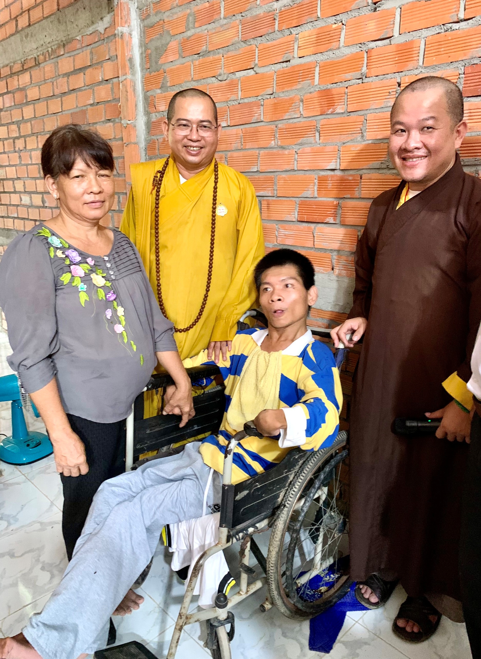 Bà Huỳnh Thị Kim Yến, sinh năm 1968, ngụ ấp Lương Phú C, xã Lương Hòa Lạc, huyện Chợ Gạo, tỉnh Tiền Giang, con là Nguyễn Huỳnh Châu, sinh năm 1991, nạn nhân chất độc da cam, bị bại não và khuyết tật từ thuở nhỏ, chân tay co quắp, phải ngồi xe lăn, sống trong căn nhà nhỏ dột nát; hoàn cảnh hết sức khó khăn, thiếu thốn mọi thứ… Ngày 15/5/2024, niềm vui đã đến với mẹ con bà, các phật tử chùa Lương Viên, xã Lương Hòa Lạc đã chung tay đóng góp xây dựng và bàn giao cho bà một mái ấm nghĩa tình mang đậm tính nhân văn mong gia đình bà Kim Yến từng bước vươn lên, vượt qua khó khăn để ổn định cuộc sống.