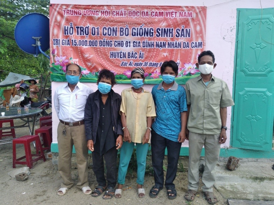 Cuối tháng 9/2021 vừa qua, được sự quan tâm của Trung ương Hội Nạn nhân chất độc da cam/dioxin Việt Nam, hỗ trợ cho 03 gia đình nạn nhân chất độc da cam có hoàn cảnh khó khăn 03 con bò giống sinh sản, mỗi con trị giá 15.000.000đ, giúp cho các gia đình nạn nhân có điều kiện để chăn nuôi, phát triển sản xuất khắc phục khó khăn vươn lên trong cuộc sống.