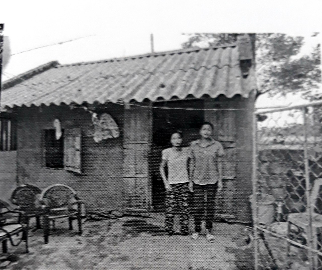 Chị Luyến và em gái trước "ngôi nhà" của mình.