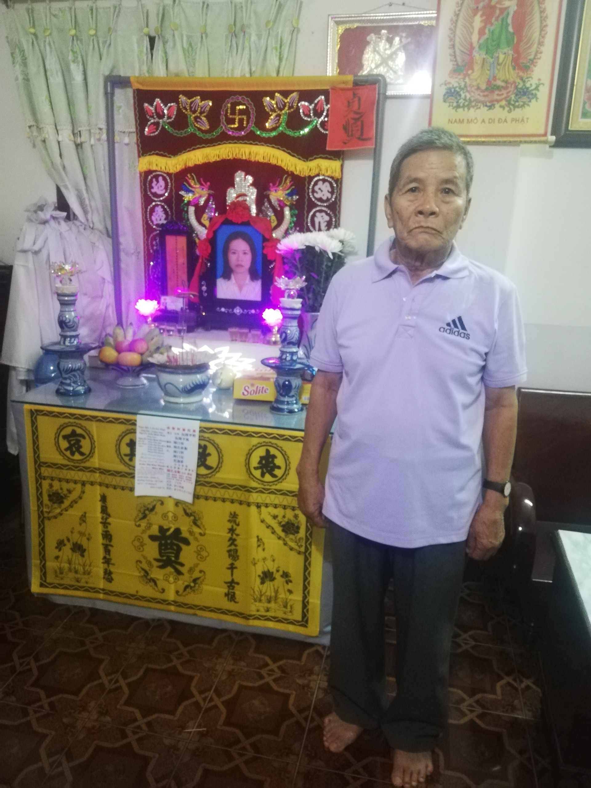 Ông Trần Viết Noạn bên bàn thờ con gái.