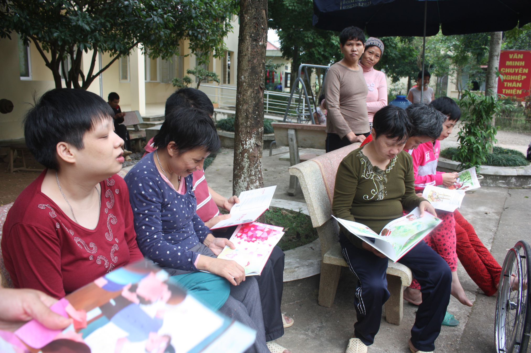 Xuất phát từ đặc thù của nạn nhân là đối tượng “đặc biệt”, sau khi tiếp nhận nạn nhân, Trung tâm đã chủ động xây dựng phác đồ chăm sóc, nuôi dưỡng, điều trị, quản lý nạn nhân theo phương án “đặc biệt”, chi tiết đến từng nhóm nạn nhân và đến từng nạn nhân. Ông Trần Đăng Khoa, cho biết: công tác tiếp nhận nạn nhân được khảo sát, thực chứng tại gia đình, có sự chứng kiến của chính quyền địa phương. Khi tiếp nhận vào Trung tâm, bộ phận quản lý tiến hành lập sổ quản lý, cập nhật thông tin chi tiết về tình trạng sức khỏe, bệnh tật, đặc tính của từng nạn nhân từ đó xây dựng kế hoạch trợ giúp phù hợp nhất với từng nạn nhân. Tiếp đến là phân công cụ thể cán bộ, nhân viên phụ trách từng phòng ở, từng nạn nhân, nhằm nắm chắc được thói quen sinh hoạt, đặc tính của từng người để có phương pháp chăm sóc, nuôi dưỡng và quản lý cho phù hợp. Duy trì chế độ sinh hoạt hàng ngày của nạn nhân đúng nền nếp, cán bộ, nhân viên phụ trách phải kiểm soát, biết được mọi hoạt động của nạn nhân, trong đó, cán bộ, nhân viên được giao nhiệm vụ phụ trách, quản lý phòng, nhóm phải kiên trì hướng dẫn, hỗ trợ về kỹ năng sinh hoạt, kỹ năng sống cho nạn nhân, như: việc ăn, uống, vệ sinh, đi lại… để từng bước nạn nhân tự chủ được một phần trong sinh hoạt. Anh Nguyễn Văn Thuấn, nhân viên Phòng Chăm sóc, cho biết: hàng ngày nhân viên phụ trách phòng phải túc trực, kiểm tra thường xuyên để kịp thời phát hiện, can thiệp những vụ việc do nạn nhân gây ra, như: đập phá tài sản, trang thiết bị, đánh chửi nhau, tự hủy hoại bản thân, bỏ Trung tâm ra ngoài. Cùng với công tác chăm sóc, nuôi dưỡng, quản lý, trong những năm qua Trung tâm duy trì thường xuyên phong trào hoạt động văn hóa, văn nghệ, thể dục, thể thao, sinh hoạt tập thể, tạo không khí vui vẻ, môi trường thân thiện giữa cán bộ, nhân viên với nạn nhân. Ngoài ra, Trung tâm còn tổ chức các hoạt động giao lưu với các đơn vị, các đoàn thể thanh niên, Cựu chiến binh các xã lân cận, từ đó tạo sự quan tâm, chia sẻ của cộng đồng với NNCĐDC. Đây cũng là một phác đồ “đặc biệt” giúp cho nạn nhân mạnh dạn, tự tin hơn trong giao tiếp. Bệnh nhân “đặc biệt”, phác đồ điều trị “đặc biệt” đã đem lại hiệu quả thiết thực. Đến nay, một số nạn nhân đã bỏ được thói quen sinh hoạt tự do, bừa bãi và dần có ý thức, như: biết vệ sinh cá nhân đúng nơi quy định, không nói tục, chửi bậy, biết gọi bố, mẹ, biết quyét dọn nhà cửa, giặt quần áo, tự xúc cơm ăn; biết tham gia các trò chơi tập thể, biết xếp hàng khi đi ăn cơm, uống thuốc, cai nghiện thuốc lá; xưng hô, chào, hỏi đúng mực. Để chứng minh kết quả trên, ông Trần Đăng Khoa đưa chúng tôi vào thăm Nhà Đa năng, ở đây hai nhân viên đang cùng các nạn nhân sinh hoạt văn nghệ. Người nằm trên ghế xếp, người ngồi trên xe lăn, dẫu rằng tiếng hát không trong trẻo, gãy gọn, đúng nhịp điệu, nhưng niềm vui lộ rõ trên mỗi gương mặt của nạn nhân. Ngoài sân, một tốp 6 – 7 người cả nam và nữ xem truyện tranh; bên cạnh là mấy nạn nhân nam đá bóng, nhìn dáng chạy xiêu vẹo, lắc lư, đường bóng chệch choạc, có người tung chân đá mà quả bóng không lăn được vài mét, có điều, họ chơi rất hăm hở, vui thích. Chúng tôi thật sự ngạc nhiên và cảm phục khi vào phòng học nghề, nhìn các cô gái cặm cụi bên khung thêu, tay lướt nhẹ, khéo léo đưa mũi kim trên tấm vải in hình những bông hoa rực rỡ, thấy chúng tôi, các cô gái chỉ mỉm cười, gật đầu chào. Anh Tô Văn Thật, nói nhỏ: các cô bị câm, điếc nhưng khéo tay lắm, khách đến thăm Trung tâm đều khen và xin mua lại những bức tranh đính đá để làm kỷ niệm, tổ học nghề làm hoa đá có 4 người, tổ học may có 8 người và tổ học máy vi tính có 5 người, lớp học chữ có 8 người, tất cả đều là nạn nhân khuyết tật, câm, điệc nhưng còn tự lực được trong sinh hoạt. Ông Trần Đăng Khoa vui vẻ cho biết: từ phác đồ chăm sóc, nuôi dưỡng “đặc biệt”, Trung tâm đã thực hiện thành công việc huấn luyện, trợ giúp NNCĐDC, những nạn nhân “đặc biệt” từng bước có ý thức trong sinh hoạt, cuộc sống hàng ngày. Đối với bố, mẹ, người thân trong gia đình thì đó là điều kỳ diệu nhất mà họ từng mong ước ở người con của mình.