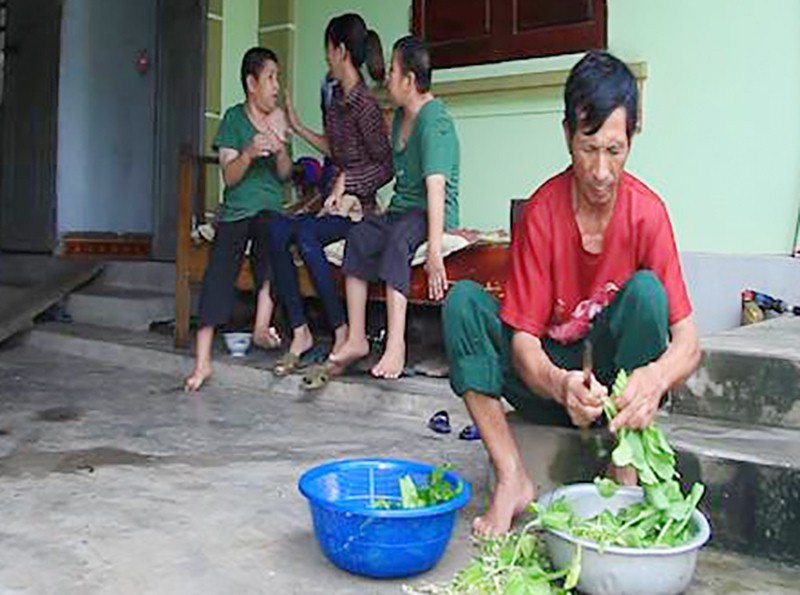 Ông Xoay chăm sóc hai con gái bị di chứng chất độc da cam.