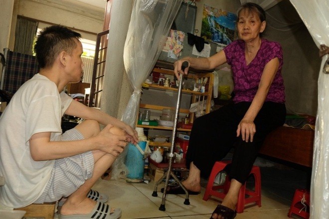 Trong căn nhà tối om, chật chội ấy, người cha già, khuôn mặt gầy guộc, hốc hác, đôi mắt trắng đục không còn nhìn rõ đang nhẹ nhàng lau mặt cho người con trai năm nay đã 40 tuổi.