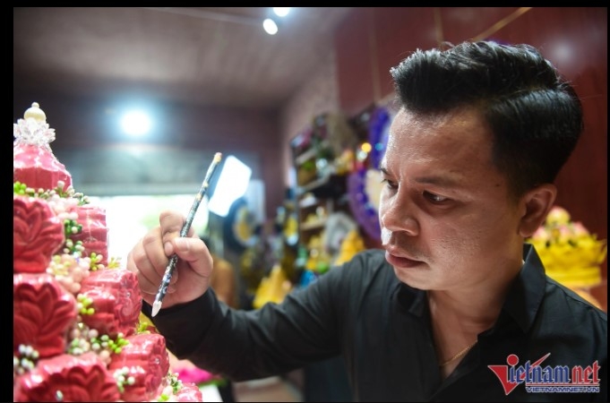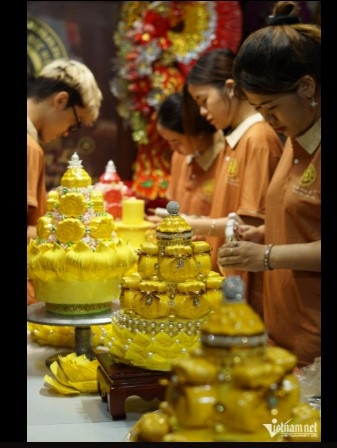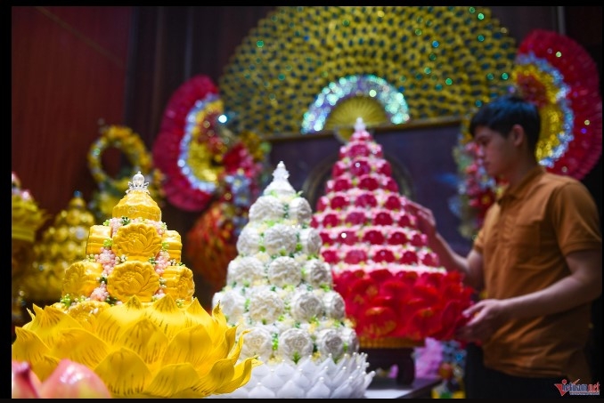 Trước đó, vào những ngày cận kề mùa báo hiếu Vu lan, xưởng này sản xuất lên tới 100 đơn hàng mỗi ngày. Không chỉ rằm tháng 7, vào dịp lễ, Tết, đội ngũ nhân viên làm việc không ngừng nghỉ.