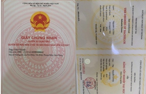 Ngày 28/9, trinh sát Công an TP Thủ Đức kiểm tra hành chính căn hộ ở phường An Khánh, bắt giữ nhóm đối tượng liên quan đến đường dây làm giả giấy tờ gồm: Nguyễn Văn Duy (SN 1981, ngụ quận Bình Thạnh), Trần Đình Nam (SN 1991, ngụ quận Gò Vấp) và Phạm Duy Linh (SN 2000, ngụ tỉnh Bình Định). Khám xét nơi ở của nhóm Duy, công an thu giữ nhiều máy móc, thiết bị, phôi bằng và các giấy tờ mà nhóm này làm giả chưa kịp giao cho khách.
