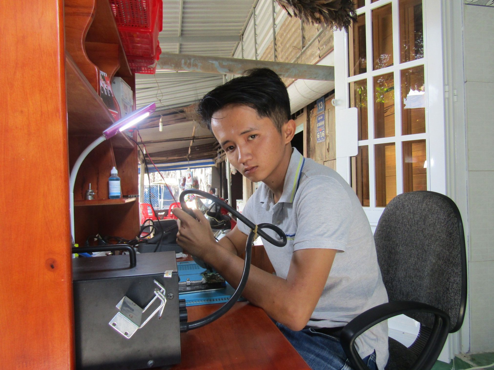 Với Phương, học nghề gì cũng là một bài toán khó, bởi đôi mắt, đôi chân không lành lặn như bao người khác, Phương nghĩ, còn khối óc và đôi tay là còn khả năng lao động, Phương quyết tâm tìm cho mình một cái nghề. Sau nhiều ngày suy nghĩ và cuối cùng Phương học nghề sửa chữa điện thoại di động, vì đây là nghề Phương đam mê lại phù hợp với hoàn cảnh của mình. Học nghề với một người bình thường vốn đã khó, huống chi với người khuyết tật như Phương thật chẳng dễ chút nào. Thế nhưng với sự giúp đỡ của gia đình, thầy dạy, bạn học, sự chăm chỉ học hành, sau hai năm học nghề sửa chữa điện thoại di động, Phương đã thành thạo sửa chữa, lắp ráp các loại điện thoại di động. Không dừng lại, để nâng cao thêm tay nghề, Phương đi phụ việc cho một tiệm mua bán, sửa chữa điện thoại di động tại địa phương. Lúc rảnh, Phương chịu khó tìm tòi, học hỏi thêm kiến thức trên trên mạng. Khi tự tin với tay nghề của mình, được ba, mẹ giúp vốn, tháng 12 năm 2017, Phương mở cửa hàng tại nhà. Nói là cửa hàng nhưng không hề có một tấm biển hiệu, nhưng với tay nghề vững nên có rất nhiều khách hàng trong và ngoài địa bàn đến để sửa chữa. Bà Trần Thị Mỹ, năm nay 63 tuổi, mẹ của Phương vui vẻ khoe với chúng tôi: hai năm học nghề, một năm đi phụ việc nâng cao tay nghề, gia đình phải đưa đi đón về cực khổ lắm, nhưng bù lại, cháu có chí lại quyết tâm theo đuổi nghề mà cháu thích; đến nay hàng tháng thu nhập kể cả bán thêm Card điện thoại đã đem lại cho cháu thu nhập từ 2 đến 3 triệu đồng. Phương chia sẻ, có được như ngày hôm nay với người khác là hết sức bình thường, nhưng với tôi ngoài sự cố gắng của bản thân còn phải nói đến sự giúp đỡ của gia đình, chính quyền địa phương và Hội NNCĐDC/dioxin của xã.