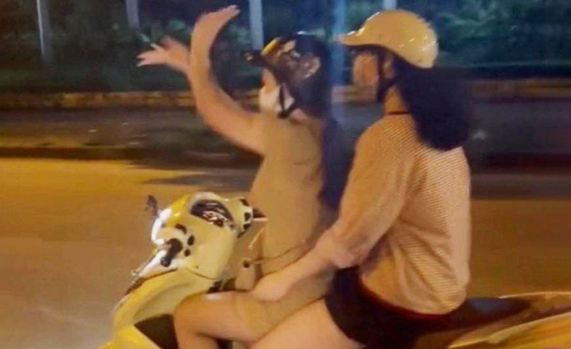 Trước đó, Công an quận Bắc Từ Liêm nhận được clip phản ánh của người dân về trường hợp một cô gái trẻ điều khiển xe máy tay ga, đằng sau đèo 1 người, có hành vi buông cả hai tay múa may tại tuyến đường trước Công viên Hòa Bình, quận Bắc Từ Liêm. Ngay sau khi nhận được thông tin, Đội Cảnh sát giao thông trật tự Công an quận Bắc Từ Liêm đã tiến hành xác minh, làm rõ vụ việc.