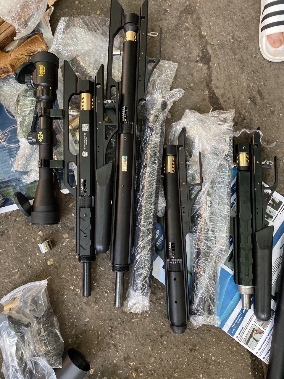 Linh kiện súng hơi bị phát hiện trên xe. Ánh: Tuổi trẻ thủ đô