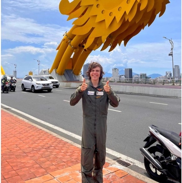 | Phi công trẻ tuổi Mack Rutherford check in Cầu Vàng Đà Nẵng - Ảnh: Đại sứ quán Anh |