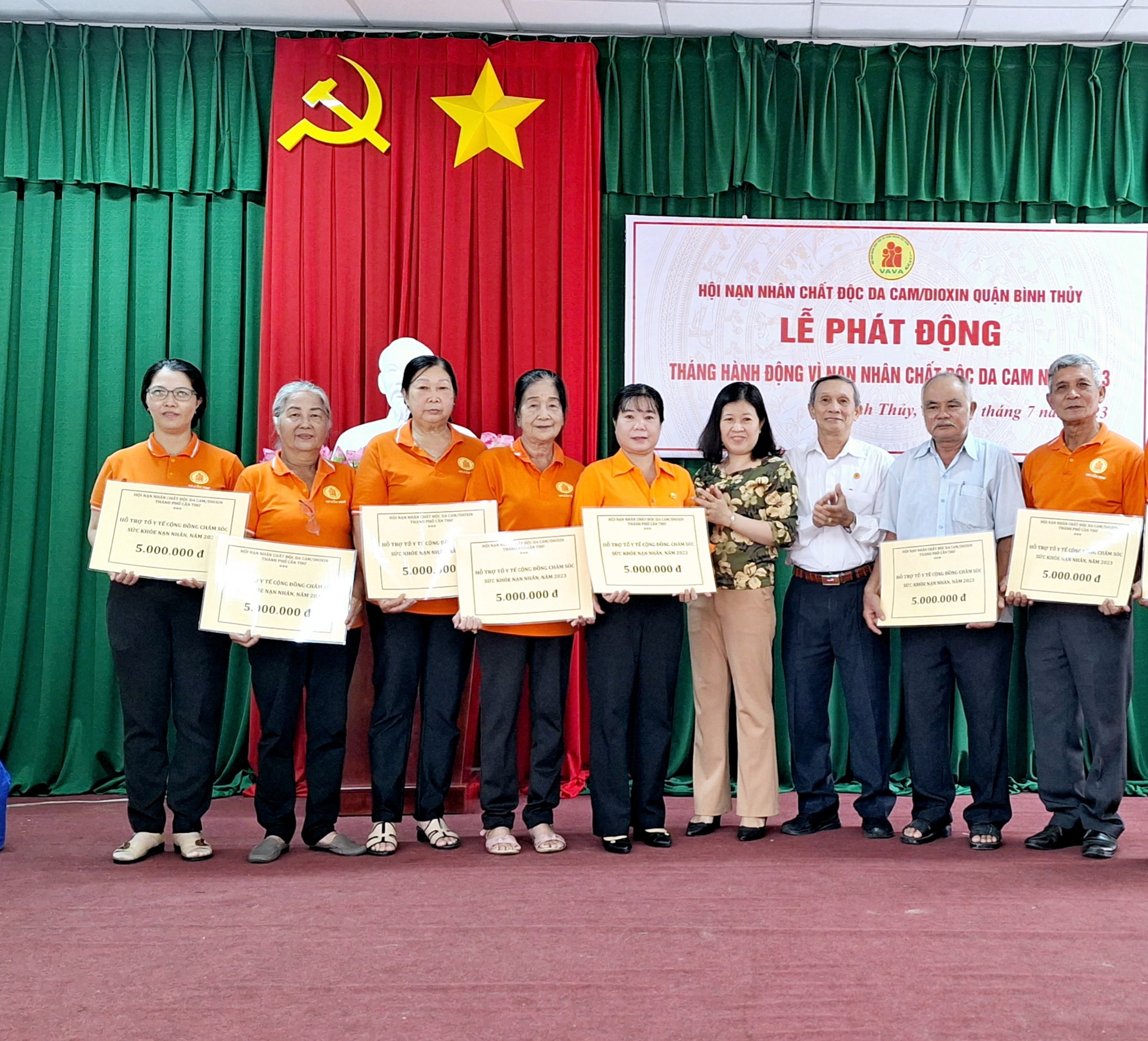 Lễ phát động, lãnh đạo Hội đã trao Bằng Tri ân Tấm lòng vàng của Hội NNCĐDC/dioxin TP Cần Thơ cho 01 tập thể và 04 cá nhân là mạnh thường quân đã đồng hành, đóng góp cho công tác chăm sóc, giúp đỡ NNCĐDC; trao 40 triệu đồng hỗ trợ cho hoạt động của 8 tổ y tế Cộng đồng chăm sóc sức khỏe nạn nhân; trao Thẻ BHYT trị giá 01 năm sử dụng cho 05 người trực tiếp chăm sóc nạn nhân. Đại diện lãnh đạo Quận hội Bình Thủy đã tiếp nhận 500 phần quà, tổng trị giá 110.600.000 đồng từ 22 Tổ chức và cá nhân ủng hộ cho "Tháng Hành động vì NNCĐDC" năm 2023 tạo nguồn lực để Hội NNCĐDC/dioxin quận Bình Thủy chăm sóc, hỗ trợ NNCĐDC trên địa bàn quận.