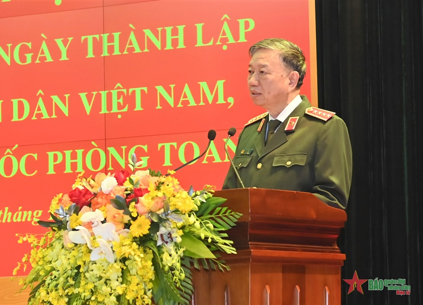 | Đại tướng Tô Lâm phát biểu chúc mừng 78 năm Ngày thành lập Quân đội nhân dân Việt Nam và 33 năm Ngày Hội quốc phòng toàn dân. |