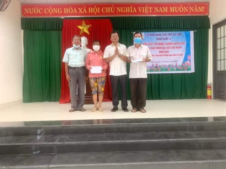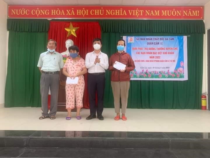 Nhân kỷ niệm 132 năm ngày sinh Chủ tịch Hồ Chí Minh 19/5 (19/5/1890 - 19/5/2022), sáng 10/5/2022 Hội Nạn nhân chất độc da cam/dioxin quận Cẩm Lệ, TP Đà Nẵng đã tổ chức trao tặng 9 suất tiền trợ dưỡng thường xuyên năm 2022 cho các gia đình nạn nhân chất độc da cam có hoàn cảnh khó khăn trên địa bàn quận, mỗi gia đình được nhận 2.400.000đ/năm, tổng số tiền Quận hội trao cho đợt này là 18 triệu đồng, nhằm chia sẻ giúp đỡ cho các gia định nạn nhân để có thêm điều kiện trong cuộc sống, đồng thời cũng yên tâm chăm sóc con em ngày càng tốt hơn. Đây là số tiền Quận hội Cẩm Lệ vận động cán bộ, công chức, viên chức, người lao động khối chính quyền và đoàn thể của quận nhận trợ dưỡng thường xuyên, từ năm 2020 đến nay. Ngoài ra, trong thời gian qua Quận hội đã vận động các nhà tài trợ hỗ trợ nhiều suất quà cho nạn nhân ở các phường trên địa bàn quận.