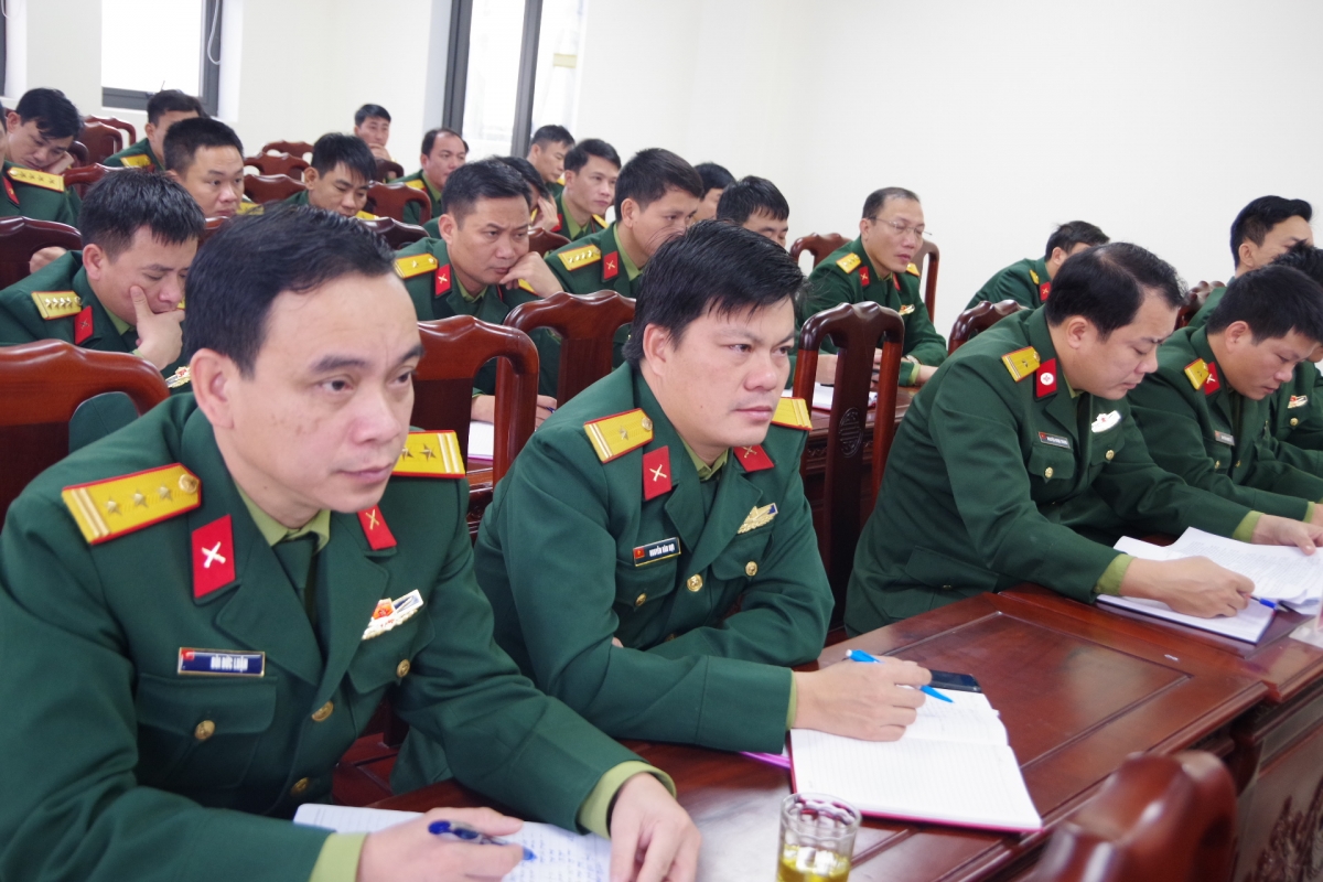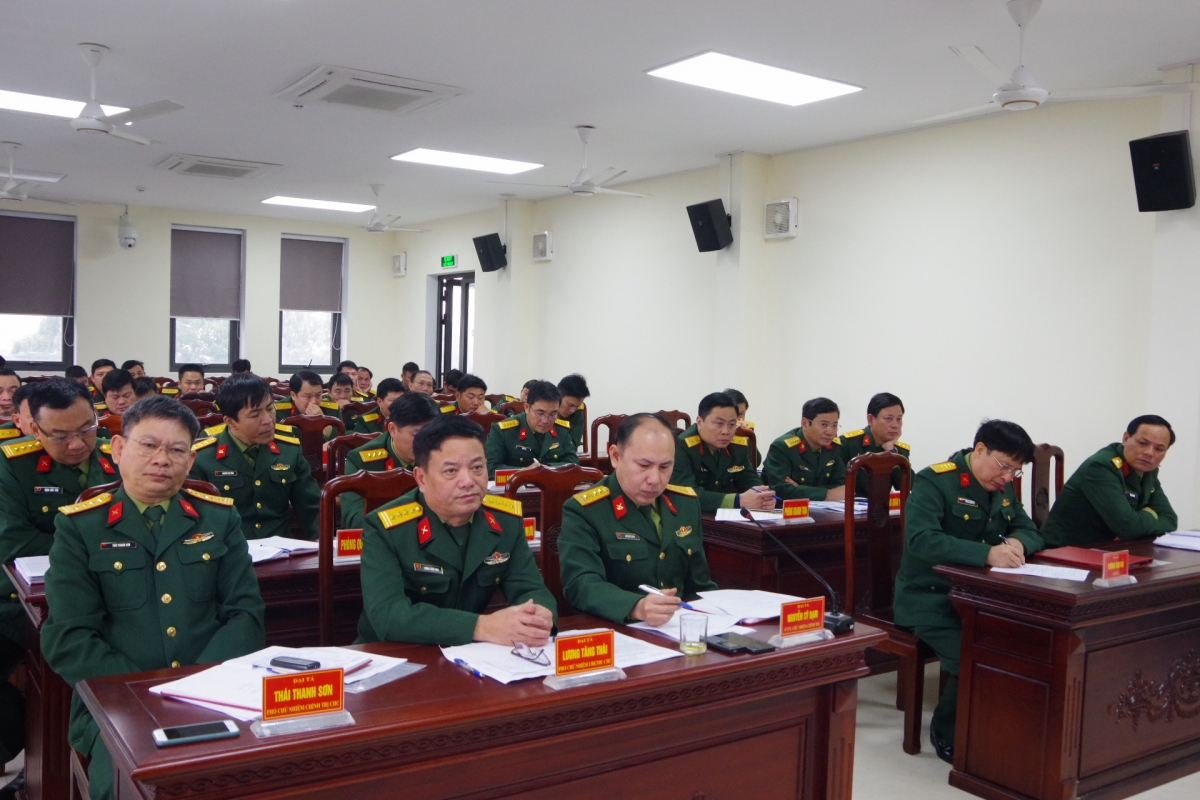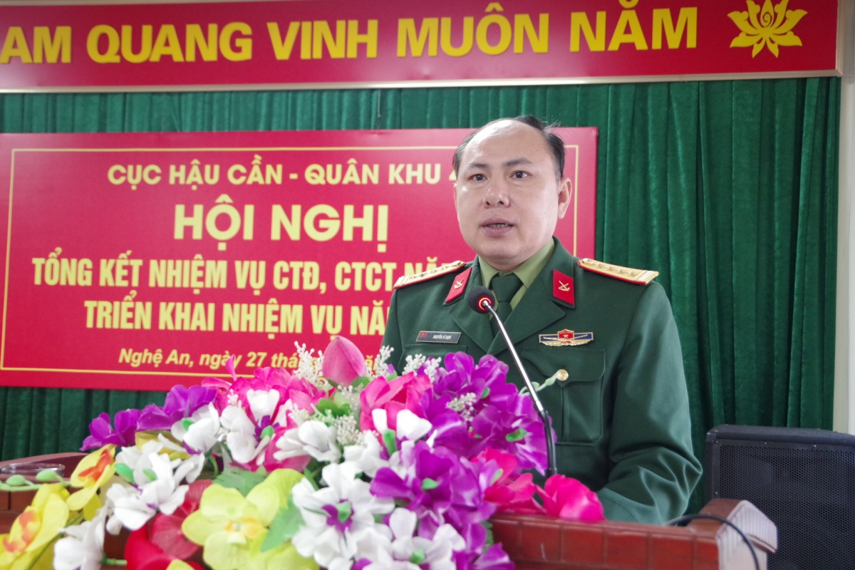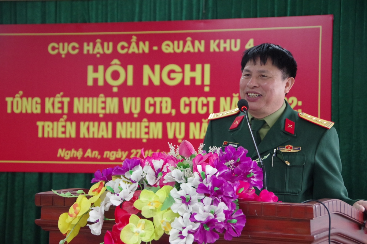 | Đồng chí Đại tá Nguyễn Sỹ Đạm - Chủ nhiệm Chính trị Cục Hậu cần chủ trì hội nghị |