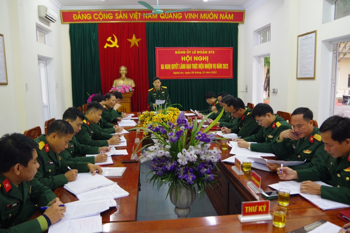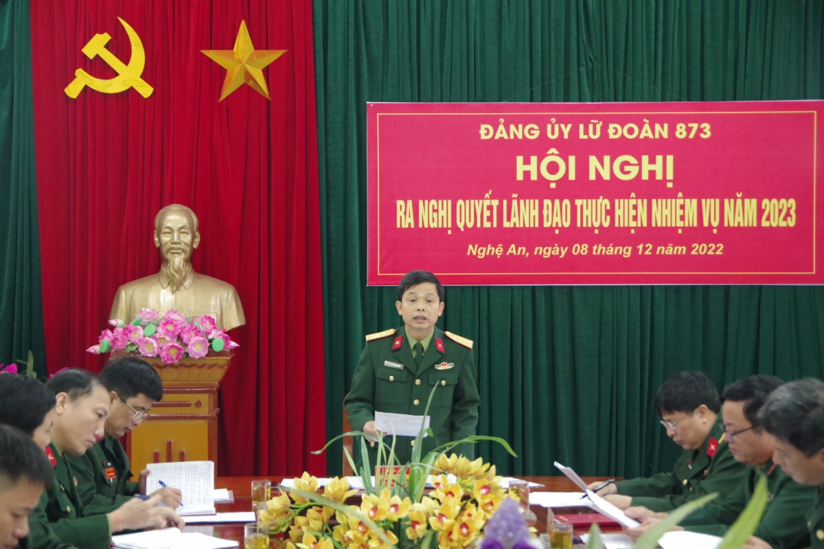 Hội nghị thống nhất và nhất trí cao nhiệm vụ năm 2023, Đảng ủy Lữ đoàn Vận tải thủy 873 phát huy những kết quả đạt được, tiếp tục quán triệt sâu sắc, triển khai thực hiện nghiêm nghị quyết, chỉ thị các cấp ủy đảng; Nâng cao năng lực lãnh đạo, sức chiến đấu của Đảng bộ, chi bộ, đội ngũ cán bộ đảng viên, chất lượng huấn luyện, sẵn sàng chiến đấu; giáo dục chính trị, quản lý tư tưởng, kỷ luật, xây dựng Đảng bộ hoàn thành xuất sắc nhiệm vụ, Lữ đoàn vững mạnh toàn diện “mẫu mực, tiêu biểu”. Tập trung tổ chức sáp nhập đơn vị đúng chủ trương, quy định, kịp thời ổn định, thực hiện hoàn thành tốt nhiệm vụ; thực hiện có hiệu quả 2 đột phá đó là: Nâng cao chất lượng quản lý tư tưởng, xây dựng chính qui, rèn luyện kỷ luật. Và Nâng cao năng lực lãnh đạo, sức chiến đấu của cấp uỷ, chi bộ.