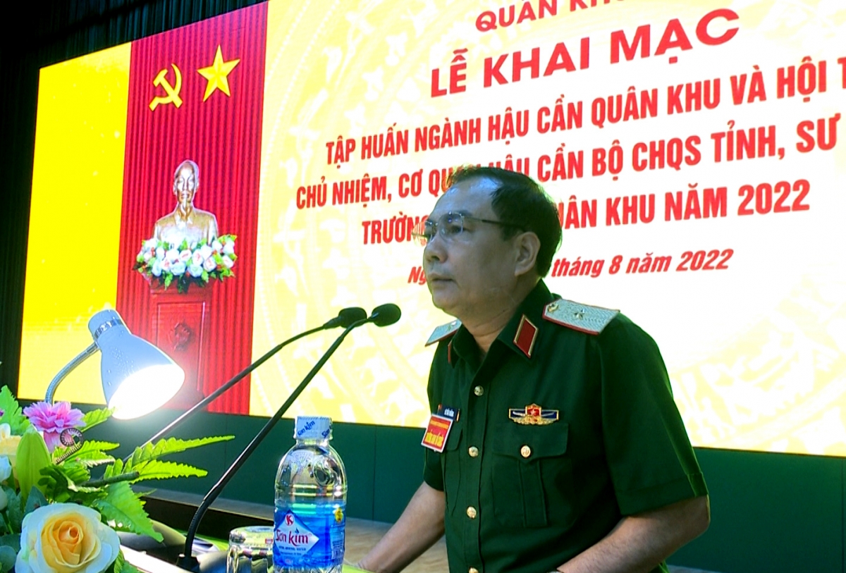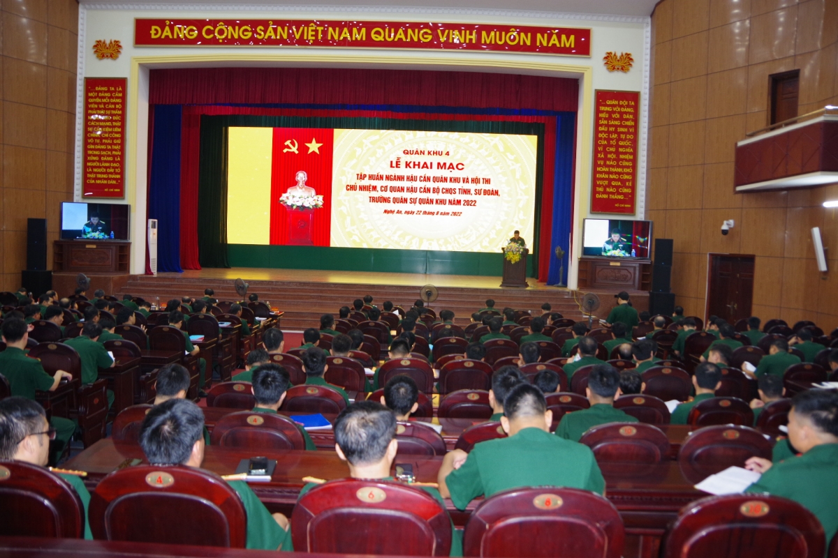 Sáng ngày 22/8/2022, Quân khu 4 Khai mạc Tập huấn ngành hậu cần và tổ chức Hội thi Chủ nhiệm và cơ quan Hậu cần Bộ CHQS tỉnh, Sư đoàn, Trường Quân sự Quân khu năm 2022. Đồng chí Thiếu tướng Lê Tất Thắng, Phó Tư lệnh Quân khu, Trưởng Ban tổ chức dự và phát biểu khai mạc, cùng dự có đại biểu Cơ quan Tổng cục Hậu cần, Thủ trưởng các Cơ quan quân khu và các đồng chí Chủ nhiệm Hậu cần, cán bộ Trưởng đầu ngành kế hoạch, Quân nhu, Quân y, Xăng dầu, Doanh trại, Vận tải của các đơn vị trực thuộc Quân khu. Thông qua đó, nhằm nâng cao năng lực toàn diện về công tác tham mưu đề xuất, trình độ chuyên môn, nghiệp vụ, năng lực tổ chức chỉ huy, chỉ đạo triển khai, hiệp đồng thực hiện nhiệm vụ bảo đảm Hậu cần chiến đấu, Hậu cần thường xuyên của Chủ nhiệm và cơ quan Hậu cần Bộ CHQS các tỉnh, Sư đoàn, Trường Quân sự và các đơn vị, làm cơ sở chỉ đạo nâng cao chất lượng công tác Hậu cần, góp phần xây dựng cơ quan, phân đội Hậu cần vững mạnh toàn diện “Mẫu mực, tiêu biểu”, đáp ứng yêu cầu nhiệm vụ trong tình hình mới.
