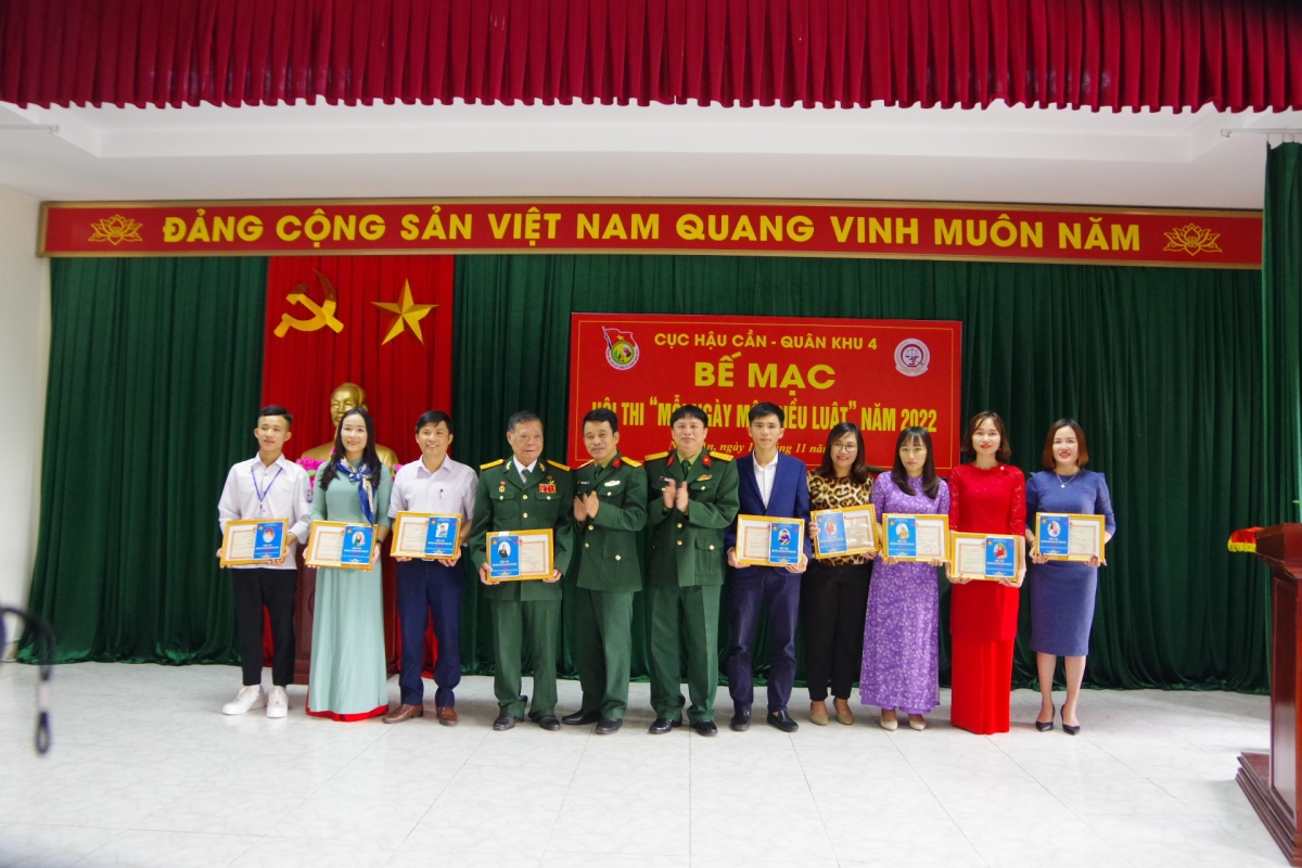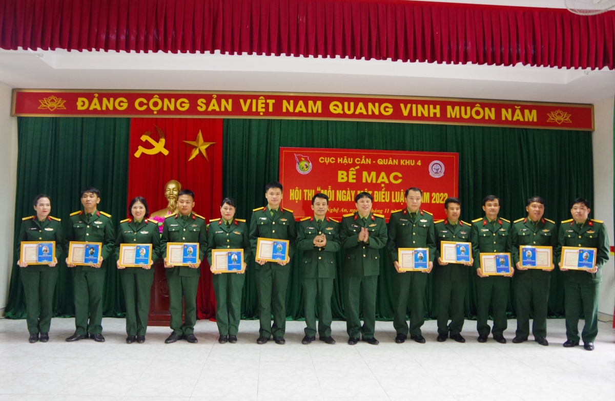 Về tập thể Ban tổ chức trao giải Đặc biệt cho Lữ đoàn Vận tải thủy 873, giải Nhất thuộc về Trung đoàn 654; Giải nhì Kho KX3 và Đội Y học Dự phòng; giải ba Kho K55 và Căn cứ Hậu cần 2, giải khuyết khích Bệnh viện Quân y 4 và Căn cứ Hậu cần 1. Về cá nhân giải Nhất đồng chí Đại úy QNCN Nguyễn Thị Thu Trang, Ban Tài chính Bệnh viện Quân y 4; giải Nhì Thiếu tá Lê Văn Phú, Chính trị viên Tiểu đoàn 682, thuộc Lữ đoàn 873 và Thiếu tá QNCN Lê Thị Bình, Kho K55; giải Ba Thiếu tá QNCN Nguyễn Thị Minh Quý, Kho KX3, Trung úy Nguyễn Quốc Trung, Bệnh viện Quân y 268 và Trung úy QNCN Phan Công Hoài Vĩnh, Trung đoàn 654 và nhiều giải phụ khác. Đây cũng là hoạt động thiết thực chào mừng kỷ niệm 50 năm Chiến thắng Hà Nội - Điện Biên Phủ trên không và 61 năm Ngày thành lập ngành Hậu cần Quân khu 4 (16/11/1961 - 16/11/2022).