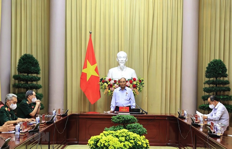 Phát biểu ý kiến tại buổi làm việc, Chủ tịch nước Nguyễn Xuân Phúc nêu rõ, trong bối cảnh dịch Covid-19 đang diễn biến phức tạp, nhiều hoạt động kỷ niệm lớn bị hạn chế, buổi làm việc thể hiện tình cảm trân trọng của Chủ tịch nước đối với hai tổ chức hội, lắng nghe những kiến nghị, đề xuất đối với công tác chăm sóc, hỗ trợ người có công, các gia đình chính sách và nạn nhân chất độc da cam/dioxin.