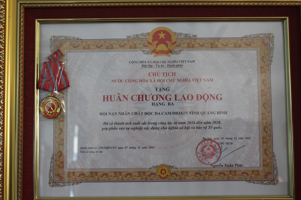 Với thành tích hoạt động 13 năm qua, Hội NNCĐDC/dioxin tỉnh Quảng Bình vinh dự được Chủ tịch nước tặng thưởng Huân chương Lao động hạng 3. Nhiều tập thể và cá nhân được tặng Bằng khen của Trung ương Hội, giấy khen của Tỉnh Hội.