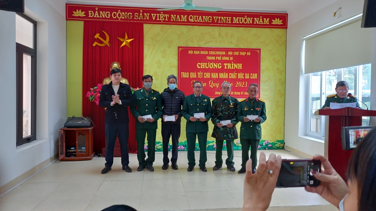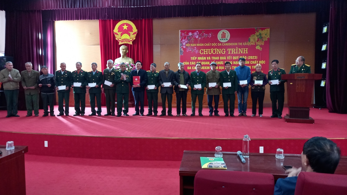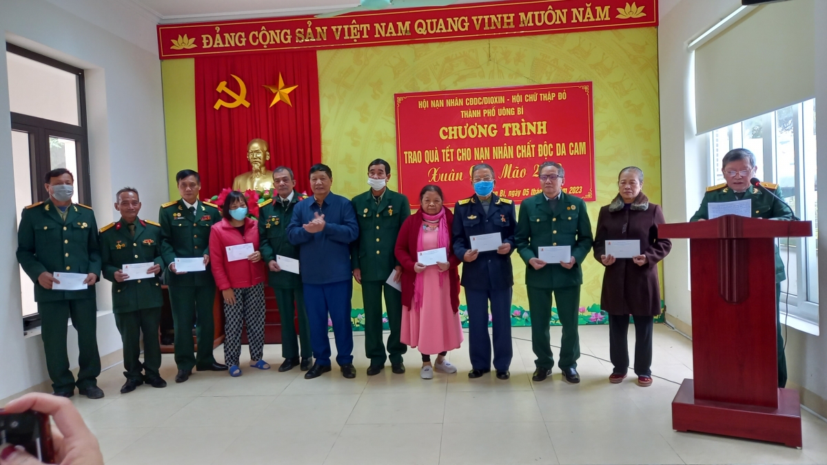 Ngày 5 /1/2023, đồng chí Phó Chủ tịch Hội Nạn nhân chất độc da cam/dioxin tỉnh Quảng Ninh Nguyễn Tiến Thanh (Trưởng đoàn thứ nhất) cùng với đại biểu các tổ chức xã hội, cơ quan, doanh nghệp, tập thể và cá nhân nhà hảo tâm tổ chức gặp mặt, thăm hỏi, trao tặng 185 suất quà (500.000 đồng/suất) cho nạn nhân chất độc da cam có hoàn cảnh khó khăn tại thành phố Uông Bí; thị xã Quảng Yên; thị xã Đông Triều. Tại các buổi gặp mặt, trao quà, thay mặt Thường trực Tỉnh hội, ông Nguyễn Tiến Thanh bày tỏ sự cảm thông, chia sẻ với những khó khăn mà nạn nhân và gia đình nạn nhân chất độc da cam đang phải gánh chịu và động viên các gia đình có gắng vươn lên trong cuộc sống. Ông cảm ơn các cơ quan, đơn vị, tổ chức, cá nhân đã quan tâm, ủng hộ Hội các cấpvề nguồn lực, kinh phí để tặng quà tết cho nạn nhân chất độc da cam: Đại đức Thích Trúc Thái Cang trụ trì chùa Thiên Quýt và Hội phật tử Chính Tâm, thành phố Hạ Long đã trao tặng 50 suất quà; Trung tâm Kiểm soát Dịch bệnh Quảng Ninh trao 10 xuất; Bộ Chỉ huy Quân sự tỉnh trao 15 suất; Tổng Công ty Gốm Đất Việt trao 10 suất; Đoàn Thanh niên Cộng sản HCM tỉnh Quảng Ninh trao 15 suất; Hội Chữ thập đỏ tỉnh trao 50 xuất…