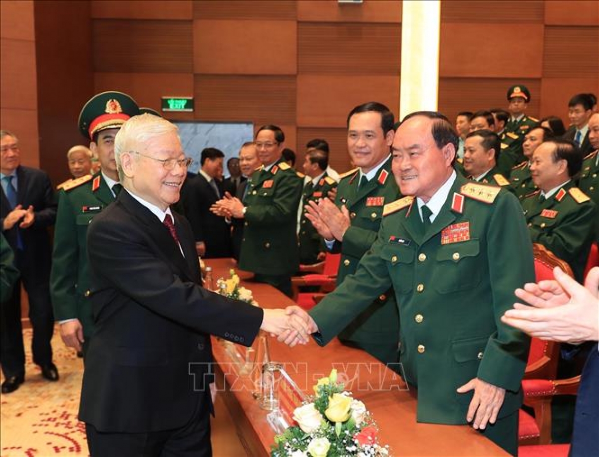 Tổng Bí thư Nguyễn Phú Trọng với các đại biểu tham dự Lễ kỷ niệm.