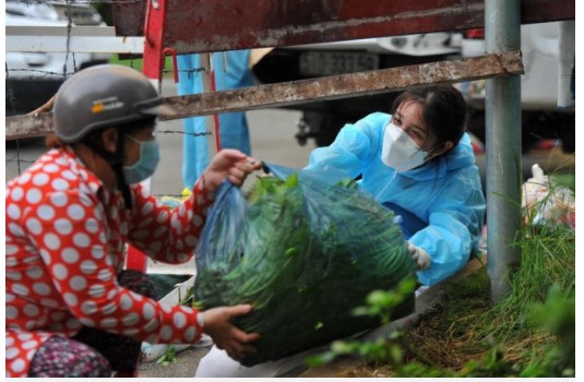 Nguyễn Đỗ Trúc Phương bên cạnh những vật phẩm từ thiện, giúp đỡ người dân trong mùa dịch