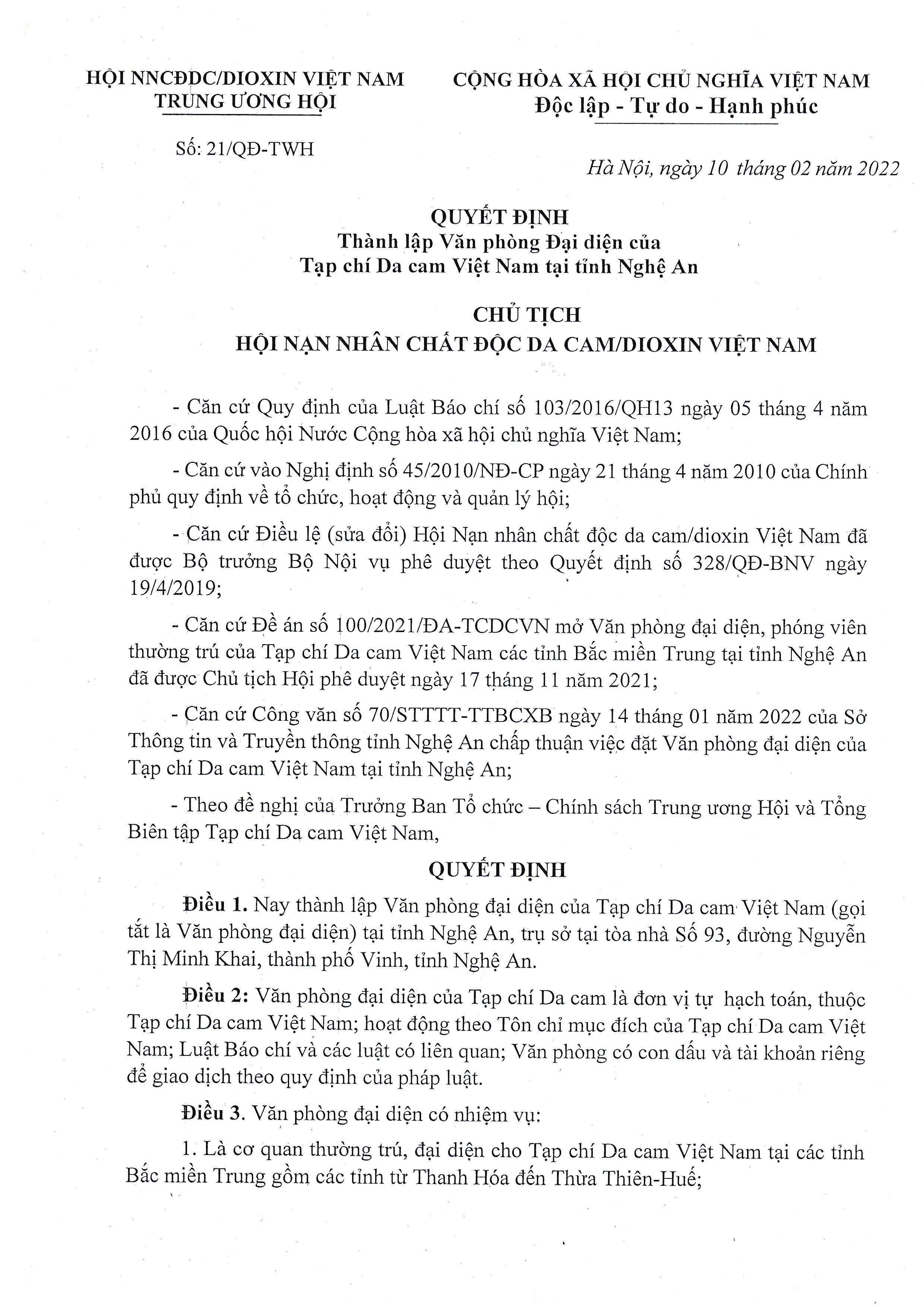 Ngày 11/11, đoàn công tác của Trung ương Hội do Trung tướng Nguyễn Hữu Chính, Ủy viên Đoàn Chủ tịch Ủy ban Trung ương MTTQ Việt Nam, Chủ tịch Hội NNCĐDC/dioxin Việt Nam làm Trưởng đoàn đã nắm tình hình hoạt động ...