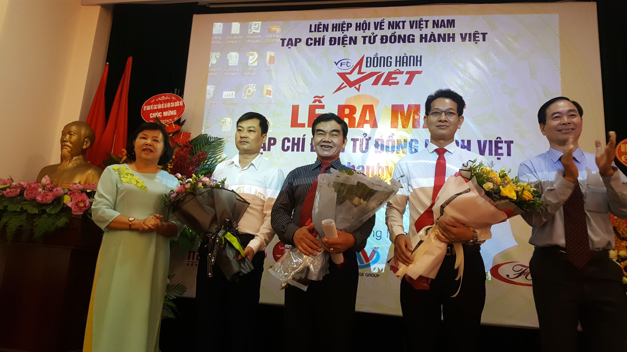Ban lãnh đạo Tạp chí Điện tử Đồng hành Việt nhận quyết định bổ nhiệm (ông Nguyễn Gia Cương - người thứ 3 từ trái sang) được bổ nhiệm làm Tổng biên tập.