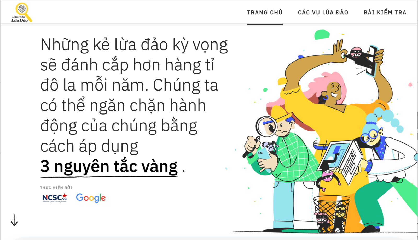 Trước những khó khăn và tâm lý lo lắng của người dân, NCSC đã triển khai những chương trình khác nhau với hi vọng bảo vệ được tối đa cho người dân trên không gian mạng. Dauhieuluadao.com là một trong những nội dung được NCSC và Google hợp tác giúp người dùng có những kiến thức, kỹ năng để tránh được các tình huống lừa đảo phổ biến trên không gian mạng hiện nay tại Việt Nam.