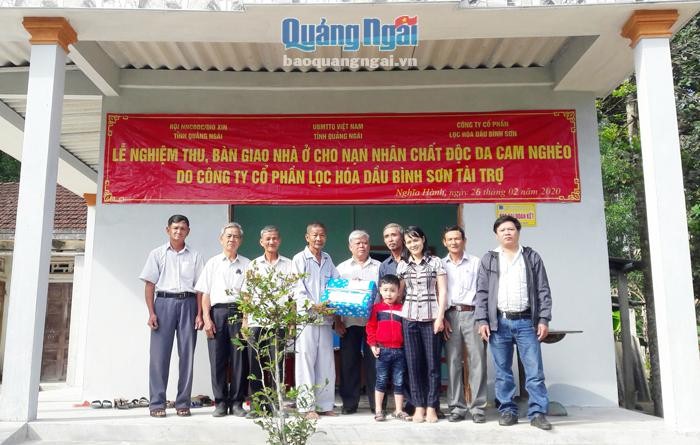 Không chỉ vậy, các cấp Hội còn quan tâm vận động hỗ trợ để nhiều gia đình nạn nhân được an cư, không phải thấp thỏm âu lo trong những ngôi nhà tạm bợ nữa. Hộ ông Võ Văn Thêm (70 tuổi) ở thôn Đồng Vinh, xã Hành Nhân (Nghĩa Hành) là một trong số đó. Trong chiến tranh, ông Thêm sống trong vùng bị rải chất độc hóa học, vì thế sức khỏe của ông bị ảnh hưởng, ông thường xuyên đau ốm, nên kinh tế gia đình phụ thuộc hết vào người vợ.