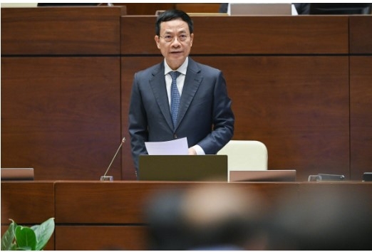 | Bộ trưởng Bộ Thông tin và Truyền thông Nguyễn Mạnh Hùng trả lời chất vấn. |
