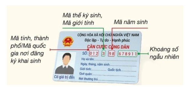 Cụ thể, chữ số tiếp theo sau 3 số đầu CCCD là mã giới tính của công dân. 2 chữ số tiếp sau mã giới tính là mã năm sinh và 6 chữ số cuối là khoảng số ngẫu nhiên.