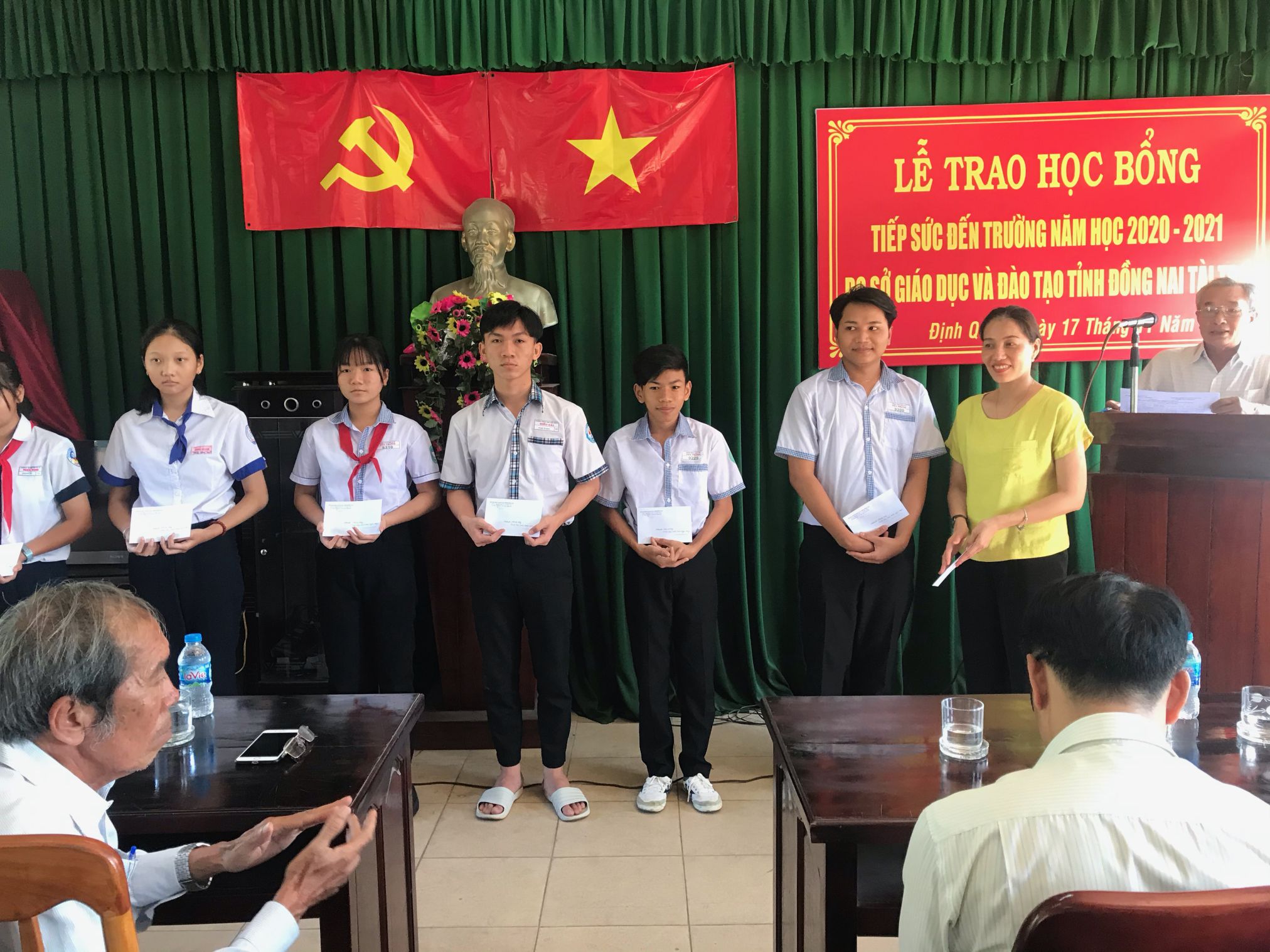 Ngày 17/11/2020, ông Đỗ Huy Khánh, Phó Giám đốc Sở GD-ĐT tỉnh Đồng Nai trao học bổng cho 23 em học sinh là nạn nhân, con, anh, chị, em ruột của nạn nhân chất độc da cam có hoàn cảnh khó khăn nhưng đạt thành tích tốt trong học tập trên địa bàn huyện Định Quán, tỉnh Đồng Nai, mỗi suất học bổng trị giá 1,5 triệu đồng. Tổng trị giá 34,5 triệu đồng. 23 xuất học bổng được trao lần này cho học sinh là NNCĐDC do Sở GD-ĐT tỉnh tài trợ nhằm động viên các em học sinh là NNCĐDC hoặc là con, anh, chị, em của nạn nhân có thêm điều kiện, tự tin vươn lên trong học tập./.