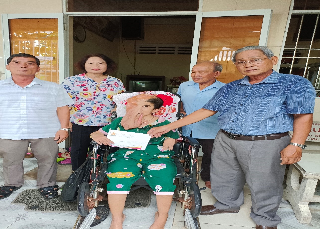 Chiều cùng ngày, Hội NNCĐDC/dioxin tỉnh Sóc Trăng phối hợp với Hội NNCĐDC/dioxin huyện Mỹ Xuyên, thăm hỏi, động viên và hỗ trợ chị Đỗ Thùy Dương, sinh năm 1988, NNCĐDC ở ấp Châu Thành, thị trấn Mỹ Xuyên, huyện Mỹ Xuyên, số tiền 4.894.200đ từ nguồn Quỹ NNCĐDC/dioxin Việt Nam do bà Francoise Brassart – người Pháp tài trợ.