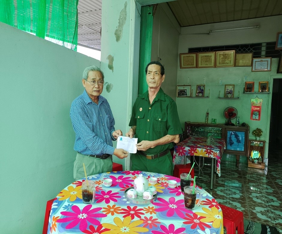 Đoàn cũng đến thăm, ông Đỗ Sơn Bé, sinh năm 1954, khóm 2, ấp Trà Canh A2, xã Thuận Hòa, huyện Châu Thành, ông là cựu chiến binh bị nhiễm chất độc hóa học, là thương binh 4/4. Tại đây Đoàn đã hỗ trợ 03 gia đình nạn nhân 4,5 triệu đồng (Tỉnh hội 3 triệu, DNTN Phúc Lợi 1,5 triệu và Huyện hội 03 thùng mì và 15 kg gạo).