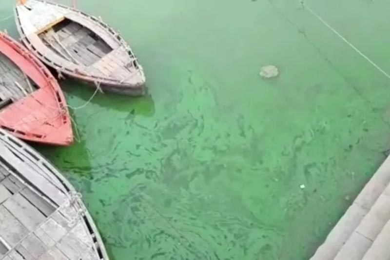 Hình ảnh nước sông Hằng chuyển màu xanh lục được ghi lại ở thành phố Varanasi thuộc bang Uttar Pradesh. Ảnh: India Today