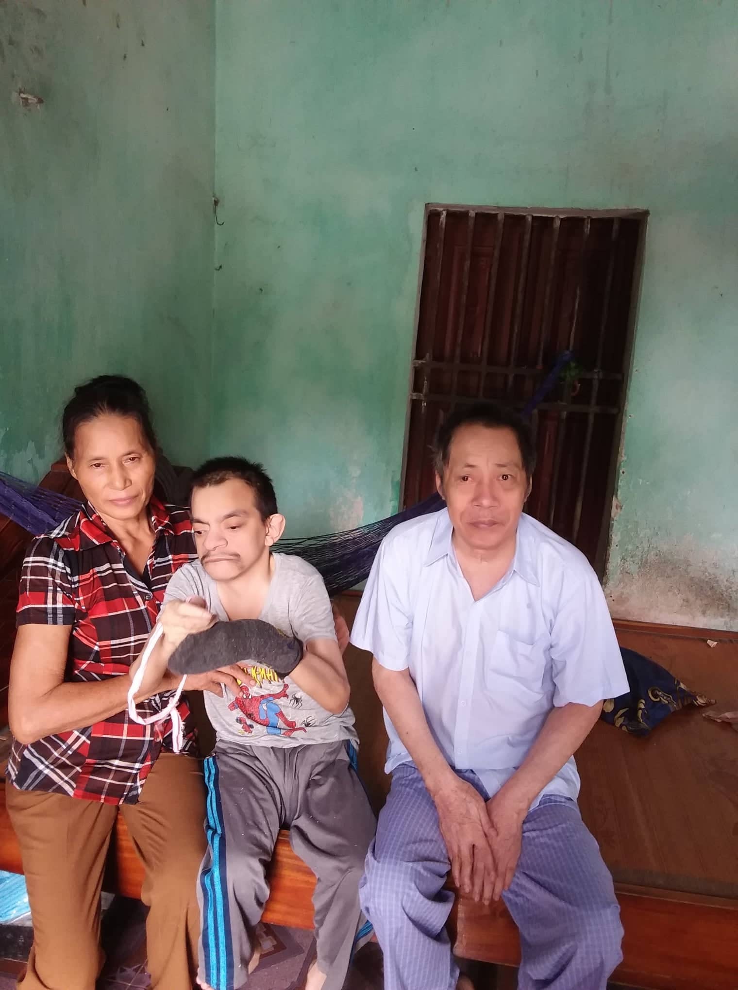Con trai ông bà là Mai Hữu Vương, sinh năm 1996, bị di chứng chất độc hóa học từ bố, sinh ra đã mắc bệnh thần kinh. Càng lớn, bệnh càng nặng, đập phá, la hét suốt ngày. Thương con, giữ an toàn sinh mệnh cho con, đi khỏi nhà là bà Thuận phải xích chân con lại.