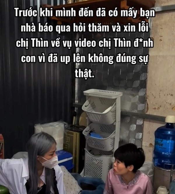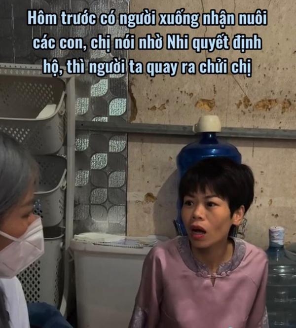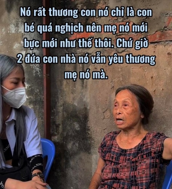 Trước tin đồn người phụ nữ này từng bắt con đi ăn xin, người hàng xóm cho biết bản thân là người chứng kiến mọi việc nên khẳng định đây không phải sự thật. Bà chia sẻ: "Nó rất thương con nó, chỉ là con bé quá nghịch nên mẹ nó mới bực như thế thôi. Chứ giờ 2 đứa con nhà nó vẫn yêu thương mẹ nó mà. Nó không khiến ai trong nhà chăm lo con cho nó đâu, nó nói sẽ gửi 2 đứa vào chùa để rèn giũa cho các cháu".