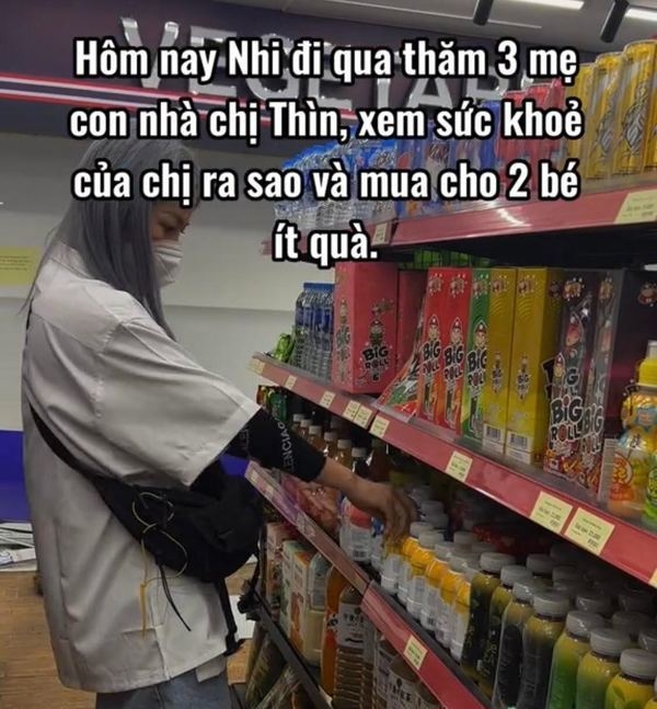 Trước khi tới thăm người phụ nữ, Nhi Lầy đã đi mua đồ giúp đỡ cho 3 mẹ con. (Ảnh: TikTok N.L.)
