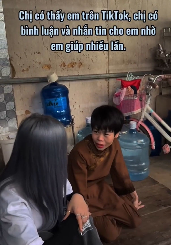 | TikToker Nhi Lầy trong lần đầu đến gặp người phụ nữ có hoàn cảnh khó khăn. (Ảnh: TikTok N.L.) |