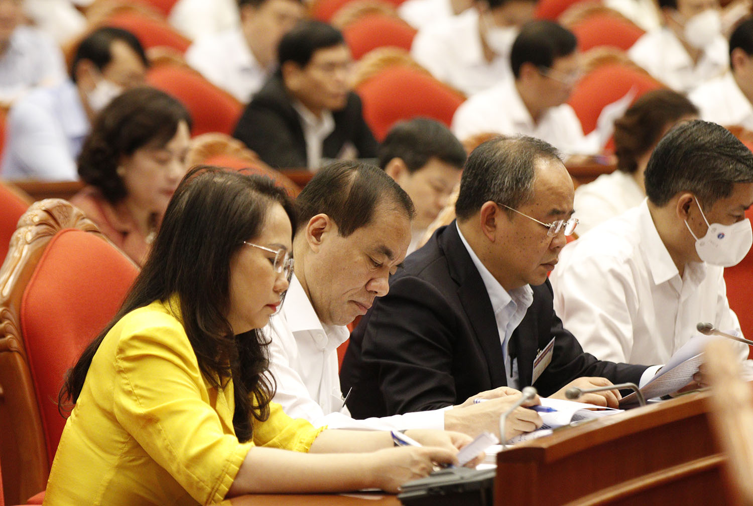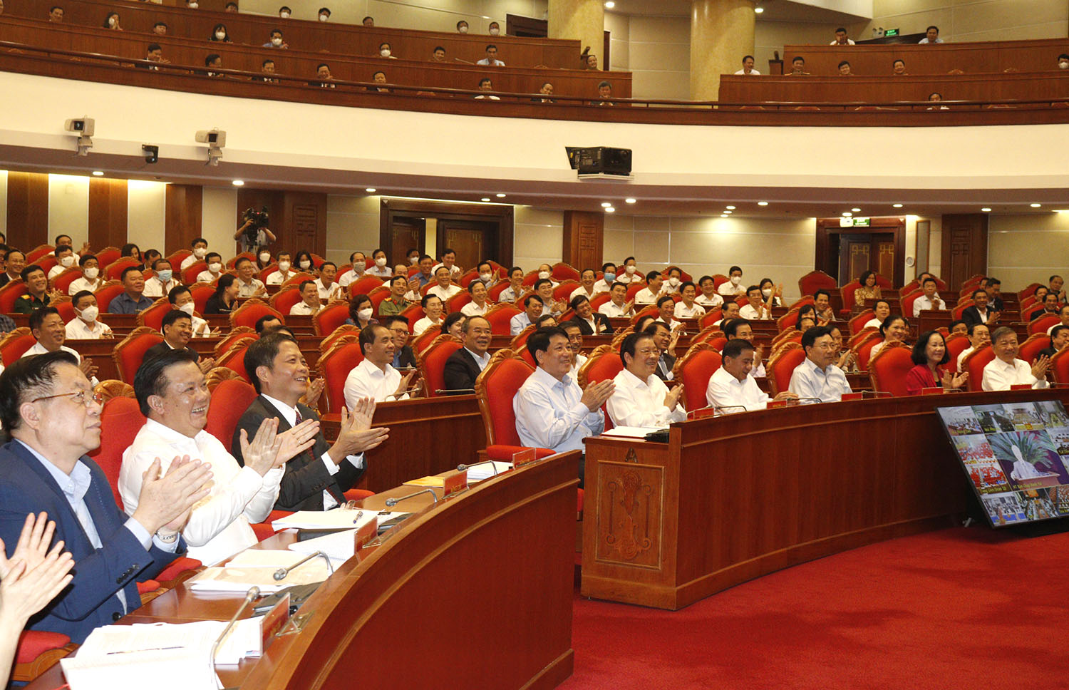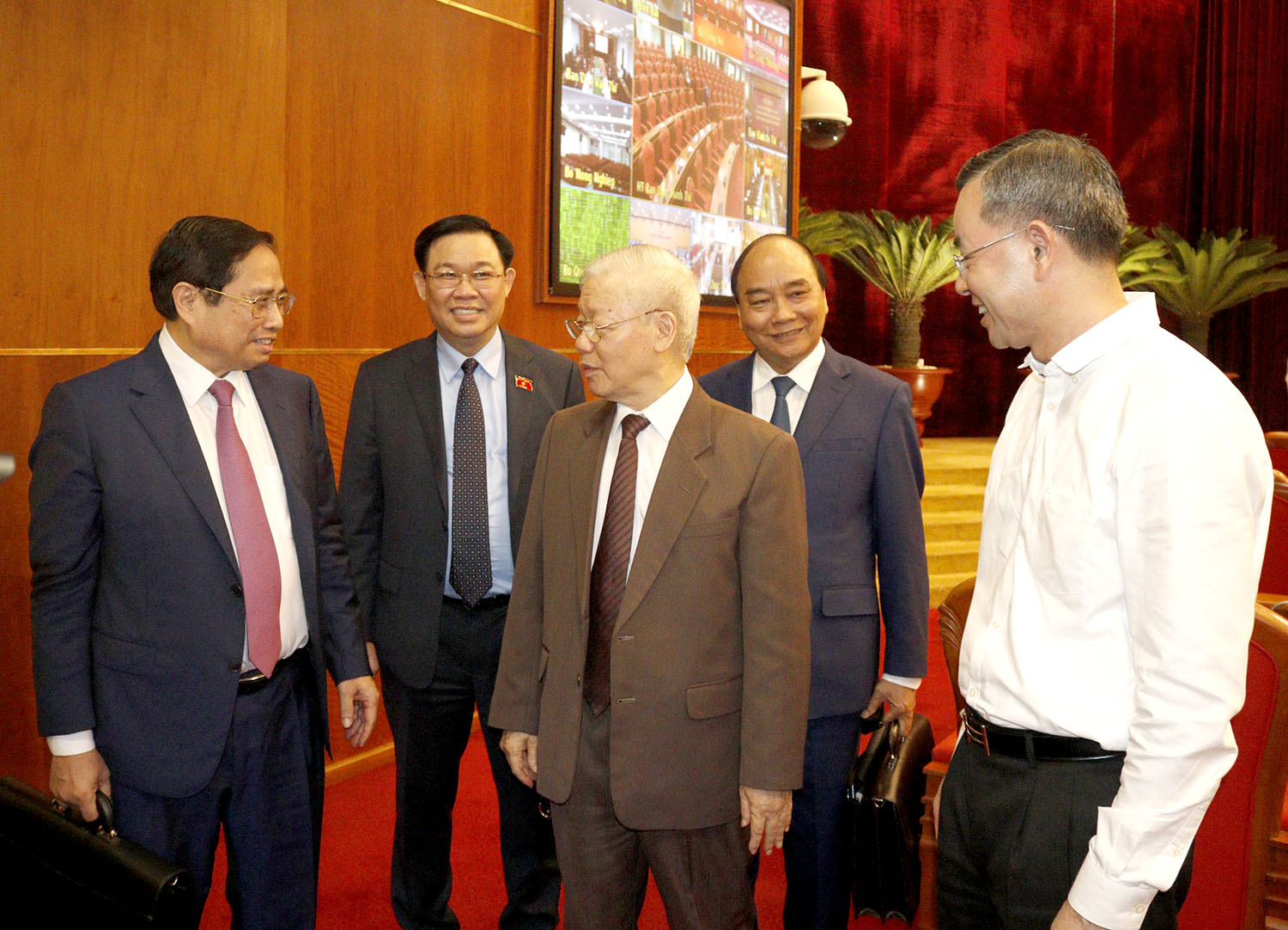 | Tổng Bí thư Nguyễn Phú Trọng, Chủ tịch nước Nguyễn Xuân Phúc, Thủ tướng Chính phủ Phạm Minh Chính, Chủ tịch Quốc hội Vương Đình Huệ và đại biểu dự Hội nghị. |