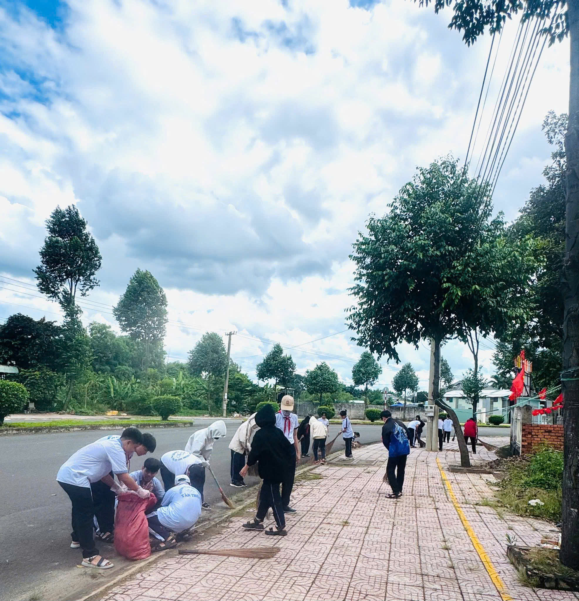 Học sinh trường THCS Tân Thiện phường Bình Phước, tỉnh Đồng Nai tham gia dọn dẹp vệ sinh môi trường